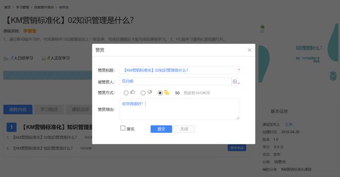 OA上随处可见的赞赏功能,”小花“一点,可对普通员工、主管、老板的行为点赞、踩和打赏;用你手中的K币为他们的出色表现打赏。