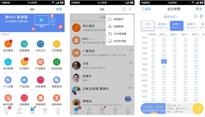 类微信的KK办公,全终端及多入口适配、高性能及金融级安全、场景即沟通无缝协作、私有化及企业级商店……带来全新的移动化办公体验。