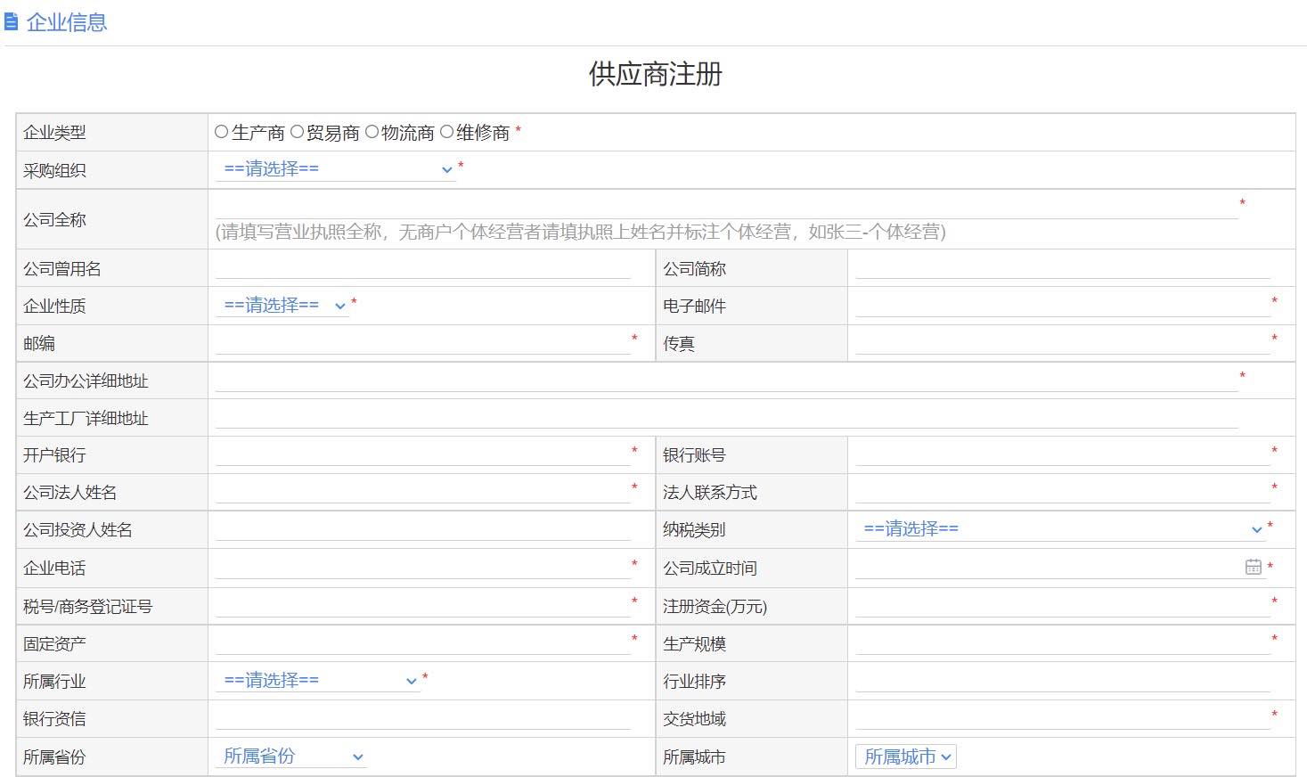 供应商档案管理:涵盖生产商、贸易商、物流商、维修商等供应商的注册与档案审批、查询;支持在线调整供货类别、供货组织。资质过期或无资质供应商可提醒异常,助力供应商资源的精细化管理。