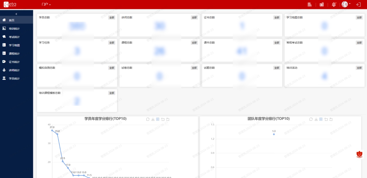 •智能统计分析:系统自动分析学员学习行为、培训效果等多维数据;可视化展示学员年度学分排行、团队年度学分排行等信息,激发个人与团队的自主学习动力。