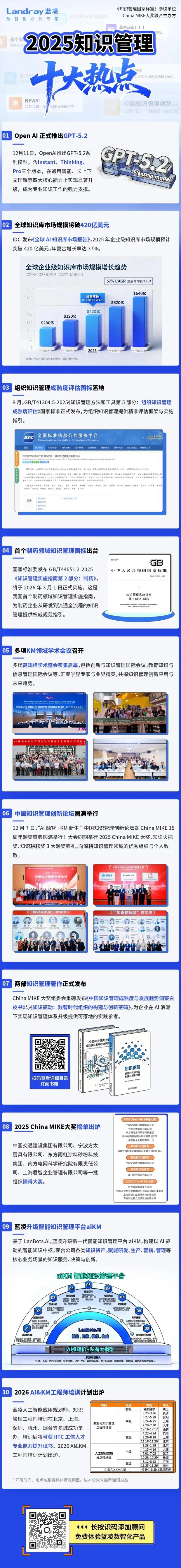 2025年,知识管理领域亮点纷呈、成果斐然。顶尖AI模型落地、市场规模稳步增长、国家标准相继出台、行业盛会密集举办,十大关键事件串联起技术创新、产业应用与生态构建的完整脉络,彰显其赋能组织创新的核心价值。