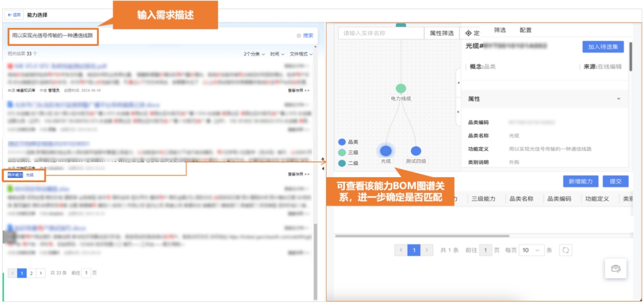 基于能力BOM表构建能力BOM图谱,通过能力关键字可搜索各级能力,并通过图谱展示上下级能力的关联关系,且支持查看具体的能力信息,实现了能力匹配的在线化,提升了跨赛道协作效率。从管理层面来看,能力BOM图谱为高层决策提供了数据支撑,助力战略规划。