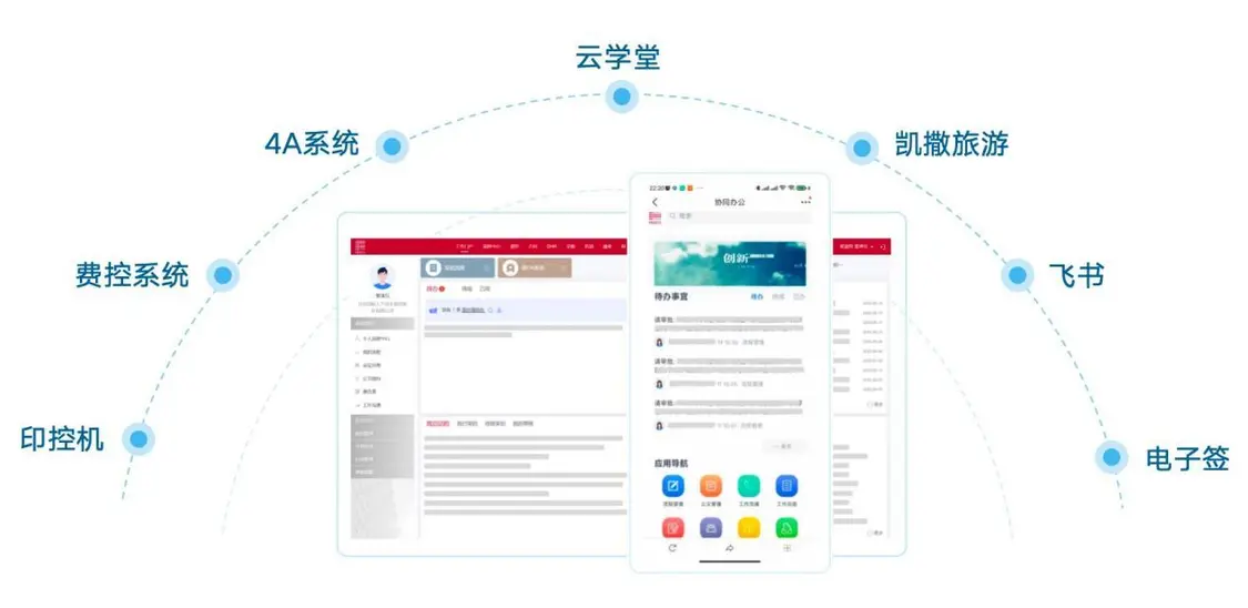基于蓝凌OA强大集成引擎,无缝接入4A、电子签、印控、凯撒、云学堂、费控等业务系统,通过工作门户中的快捷通道可以免密登陆,快速切换。员工无需记忆多套账号密码,真正实现“单点登录、全网通行”,显著降低操作复杂度,让每位员工都能聚焦于核心工作,实现个人与组织协同效率的整体提升。