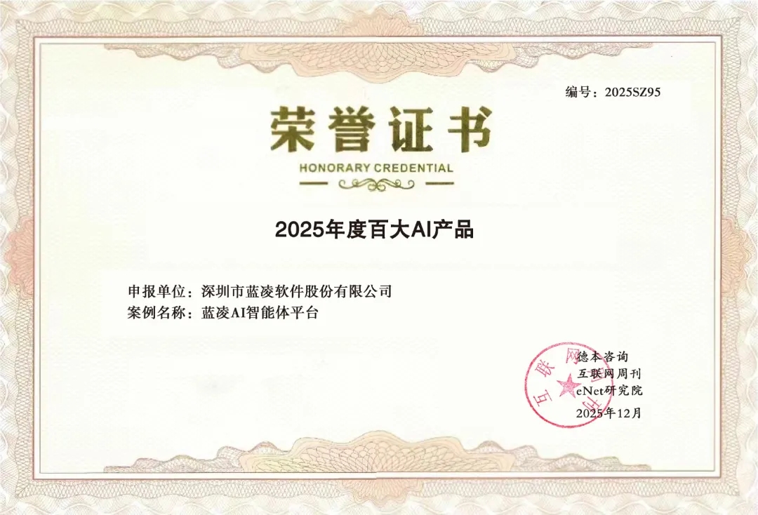 DBC德本咨询、《互联网周刊》等揭晓“2025年度百大AI产品”榜单,蓝凌软件自主研发的AI智能体平台,在字节、华为、阿里、百度、小米等行业巨头云集的激烈竞争中成功上榜,彰显了其在AI数智化办公领域的硬核技术实力。