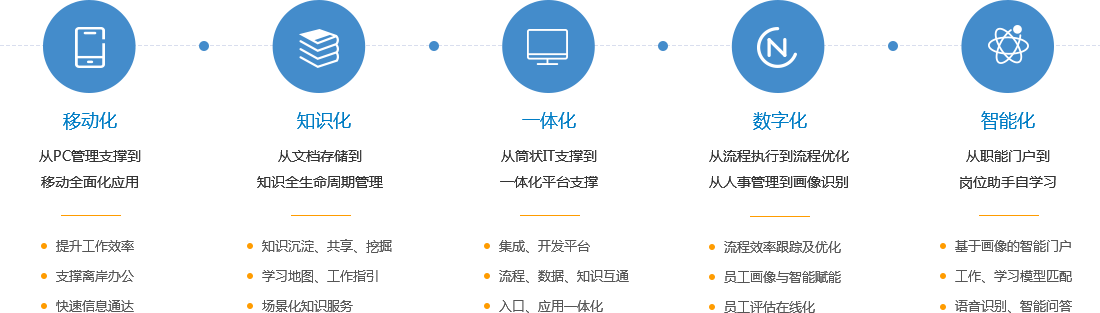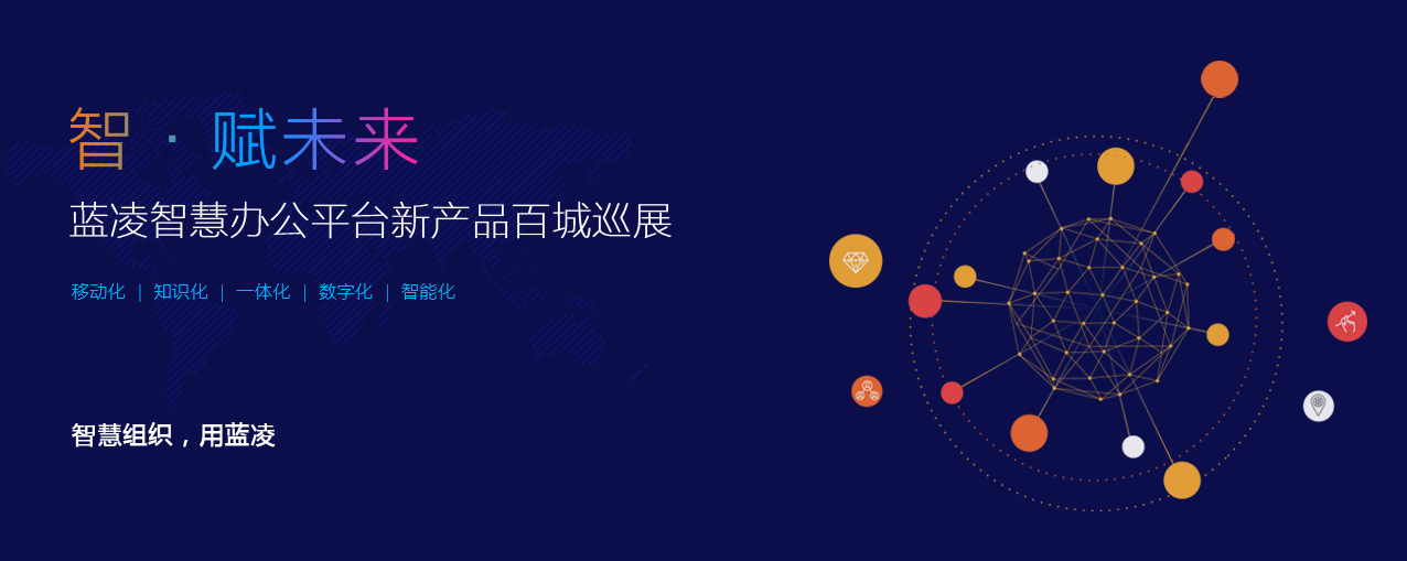 为了更好地帮助传统企业实现数据化、智能化转型,构建一个全新的智慧型组织,蓝凌,融合17年来服务于大中型企业的经验积累和全新技术,提出了 “智慧2020”的构想、规划和落地支撑,发布了以“移动化、知识化、一体化、数字化、智能化”五化为核心的智慧办公平台。