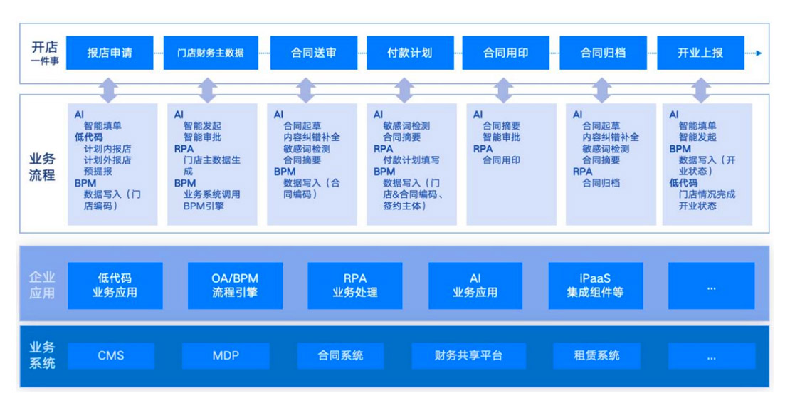 基于整个业务,贯通各个流程、IT系统、人工活动等,实现完整业务效能提升